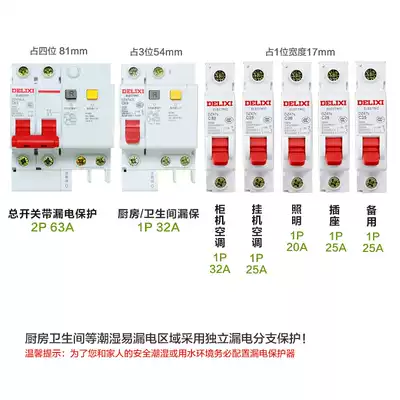 Delixi air switch with leakage protector DZ47sLE circuit breaker 63 household leakage protection 2P32A40A63A