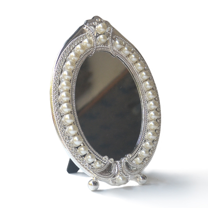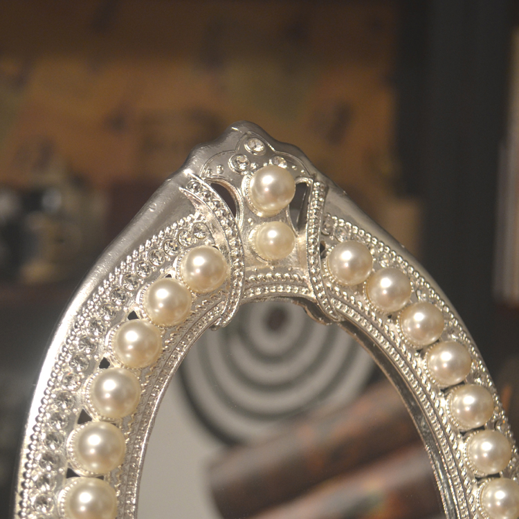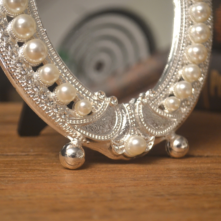 European single mirror Silver Western makeup mirror Desktop Pearl makeup oval mirror Creative Valentine's Day gift