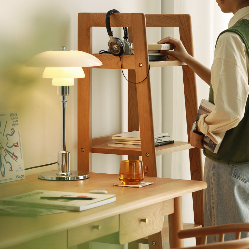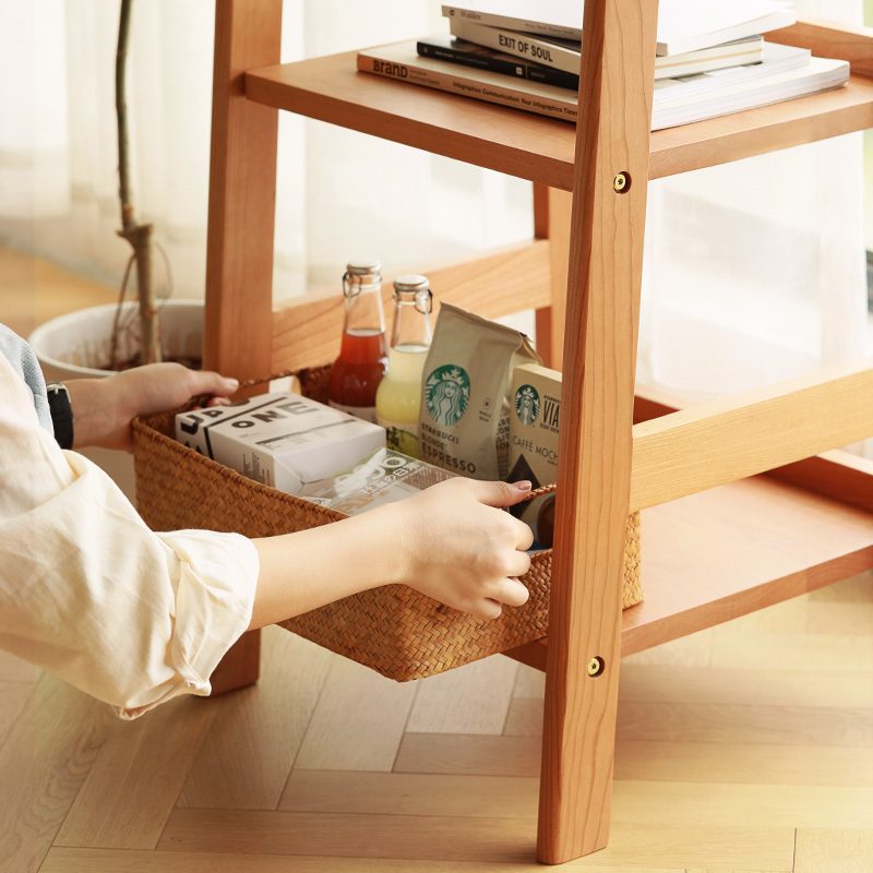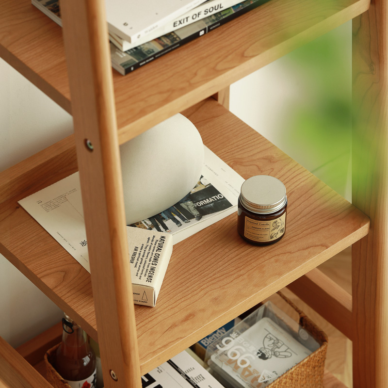 North Stranger Furniture Solid Wood Bookshelves Day Style Original Wood Color Cherry Wood Small Bookcase Minima Floor Trapezoid Nordic Shelf