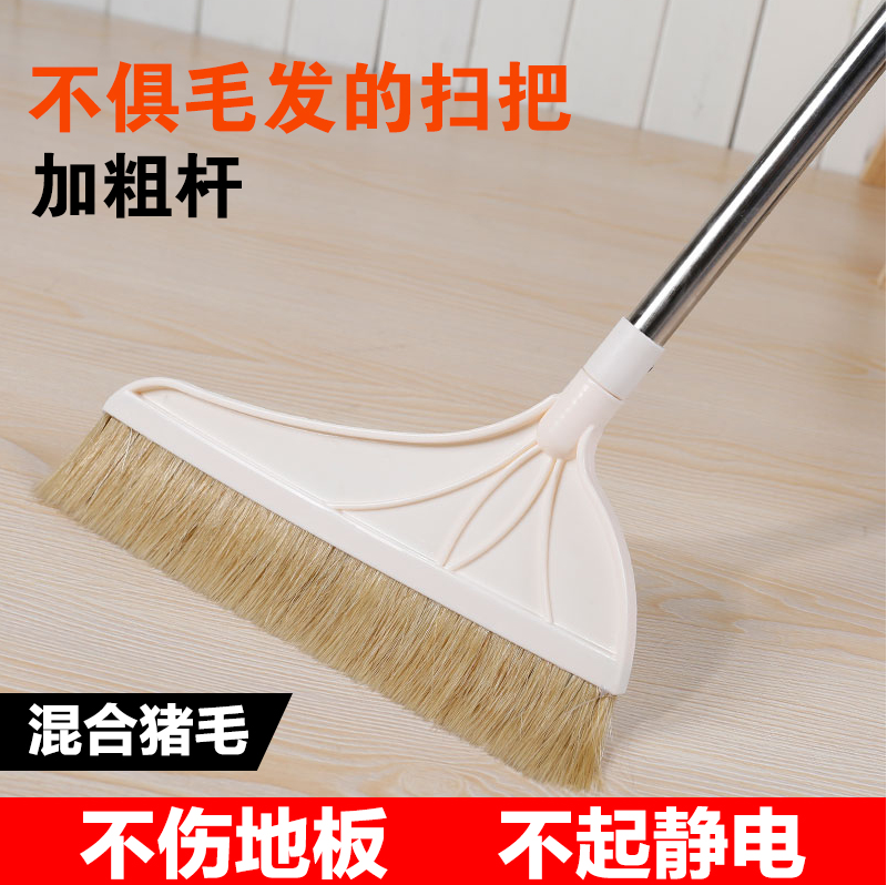 Pig hair broom, pig mane broom, broom broom, household soft hair, extended horse mane, stainless steel rod, dust removal dustpan set