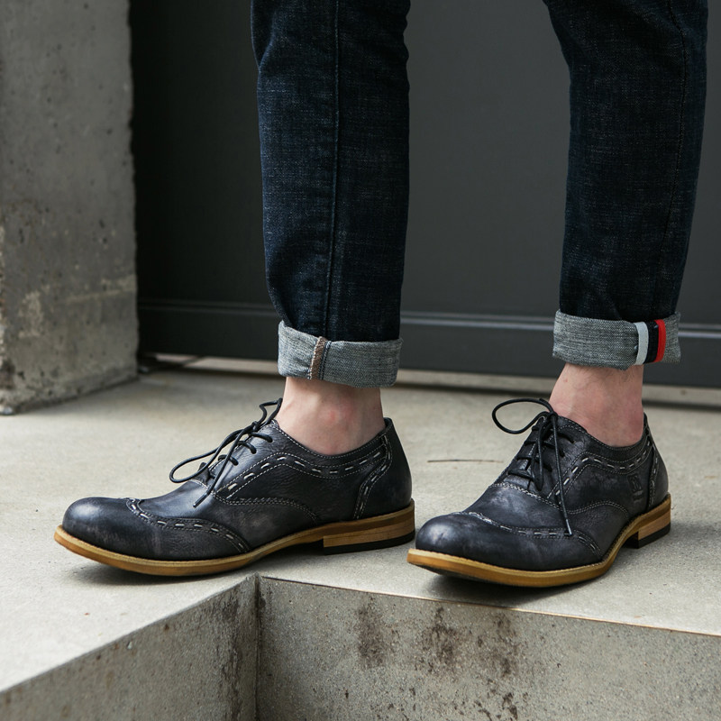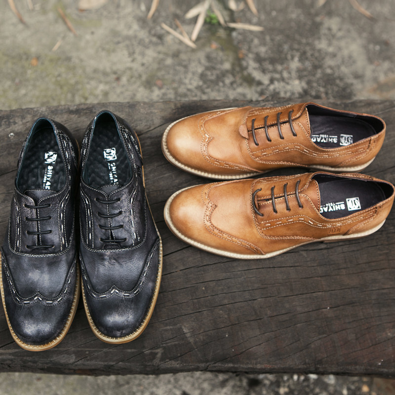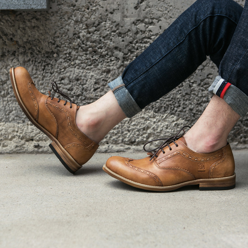 New product Retro sculpture British tide men's shoes Block Europe and the United States to make old low-gang leather shoes soft sole round head shoes