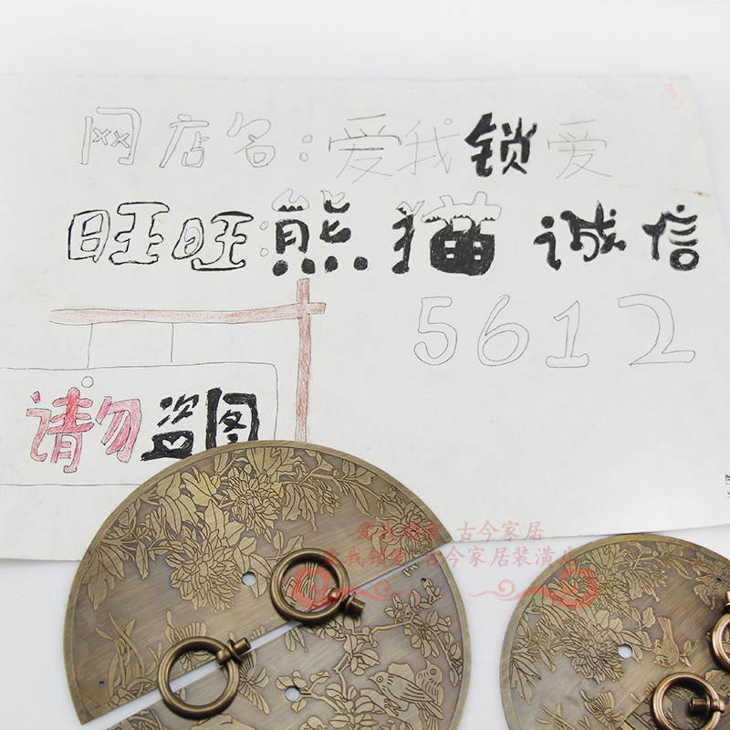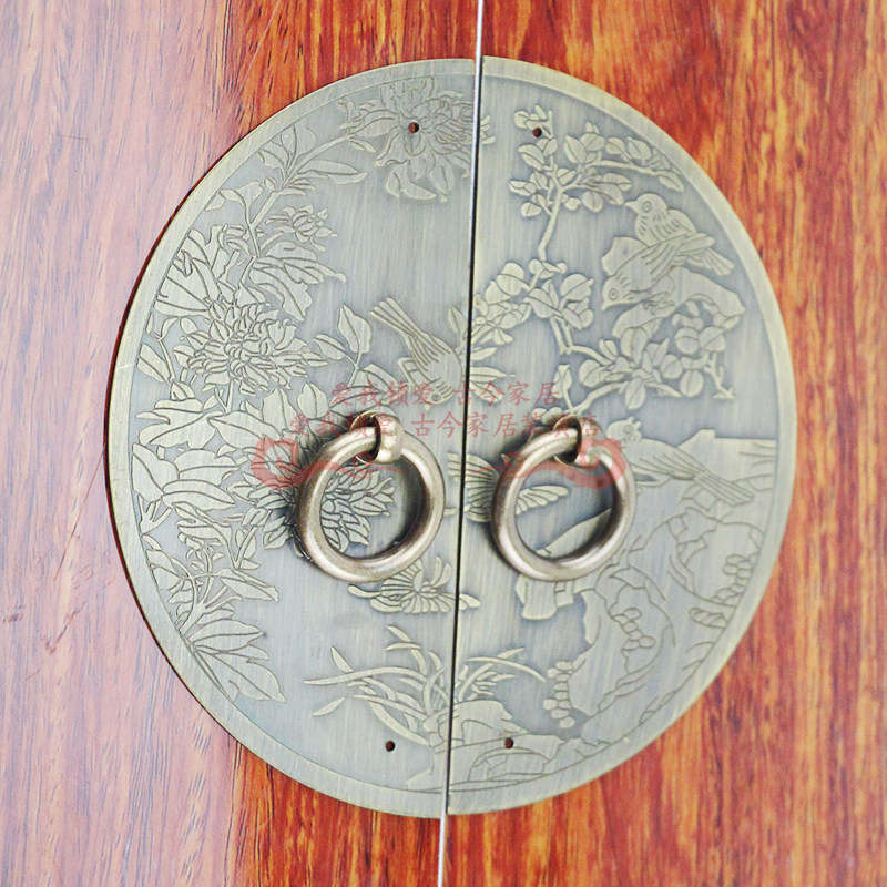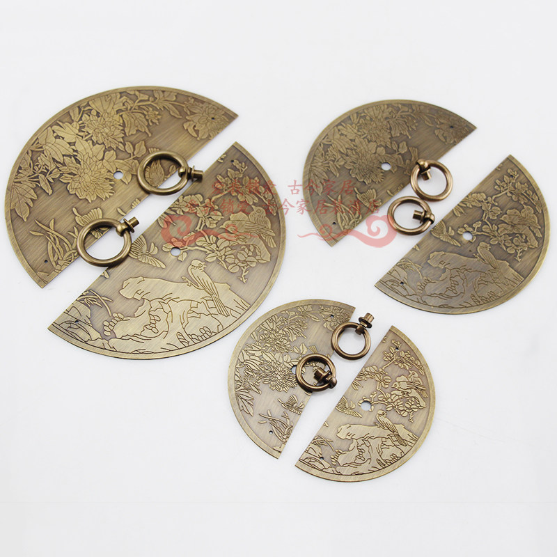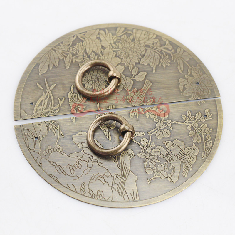 Disc handle bronze carved flower bird Chinese imitation ancient gate Ming fitting door handle disc decorative sheet pure copper pull handle ancient copper