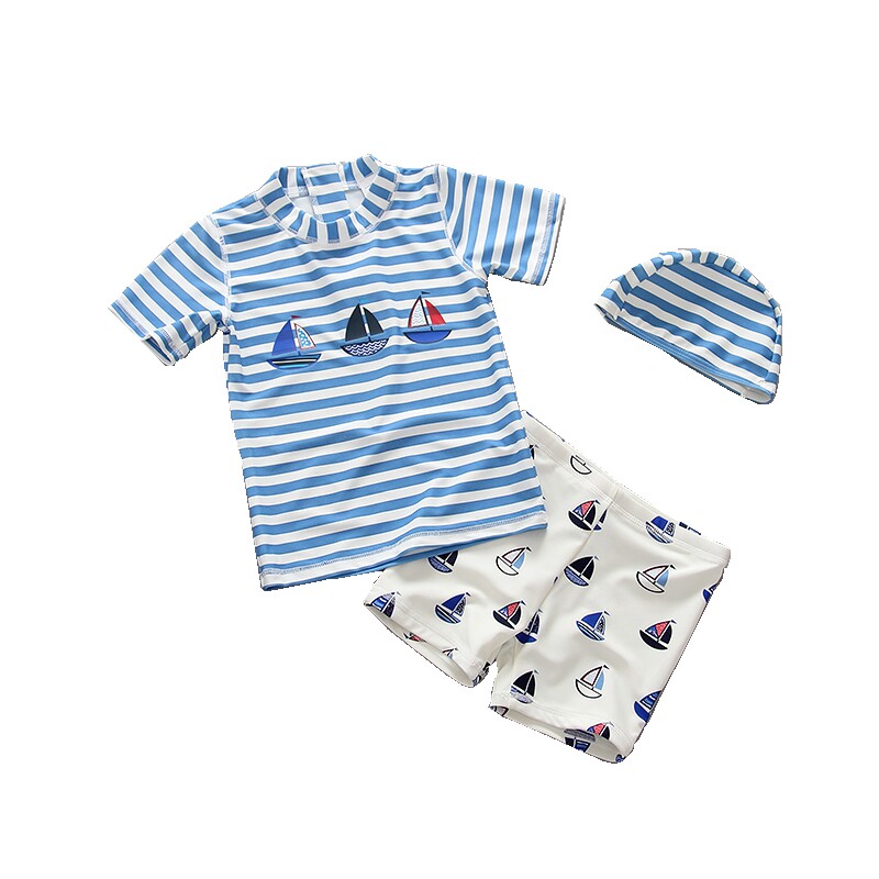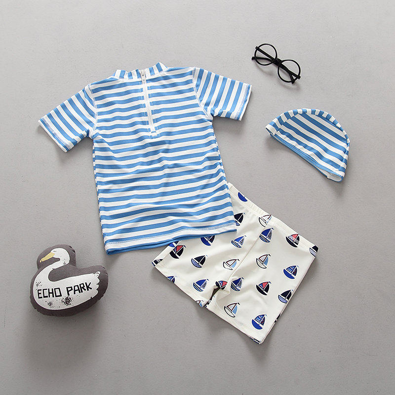 Foreign trade children's swimsuit Boy swimsuit pants suit Boy two-piece children's sunscreen bathing suit Korean baby send hat