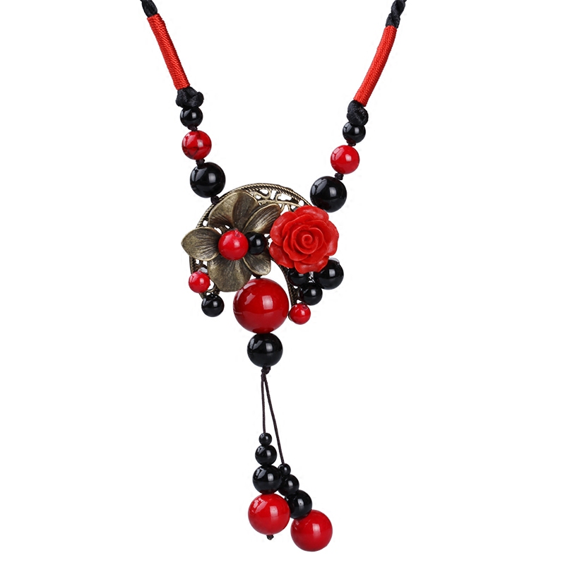 National Wind Rose Floral Ornament Necklace Pendant Female Woven Rope Pendant Sweater Necklace Autumn Long Version Retro Neck Necklace Accessories