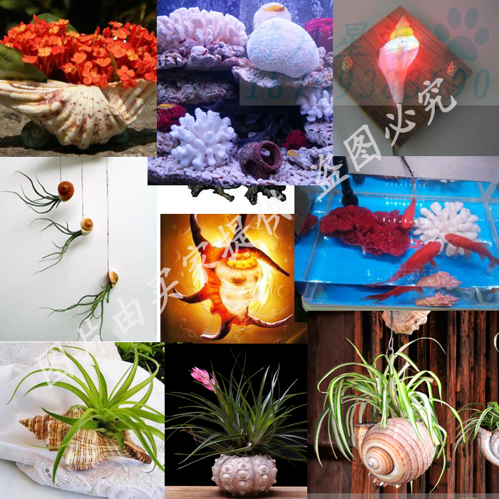 Natural sea snail shell flower pot multi-meat karting flower pot with bottom foot shell flower pot flower pot creative home decoration pendulum piece