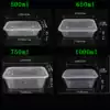 Rectangular packing box 1000ml disposable thickened lunch box Plastic transparent delivery lunch box Fast food box with lid