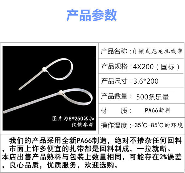 Utai 4 * 200 white plastic national standard self-lock nylon tie seal fixed plastic wire bale with direct marketing