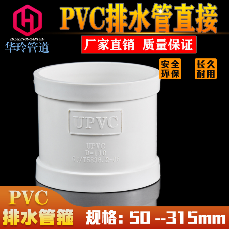 PVC drainage direct pipe hoop drainage pipe straight through joint down water pipe fittings 50 75110160200