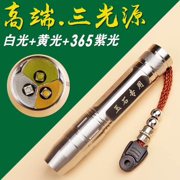 Three light sources for jade special strong light flashlight jewelry jade amber identification super bright rechargeable money detection lamp pen