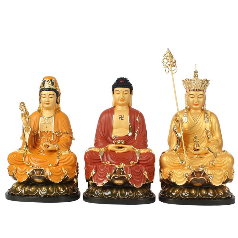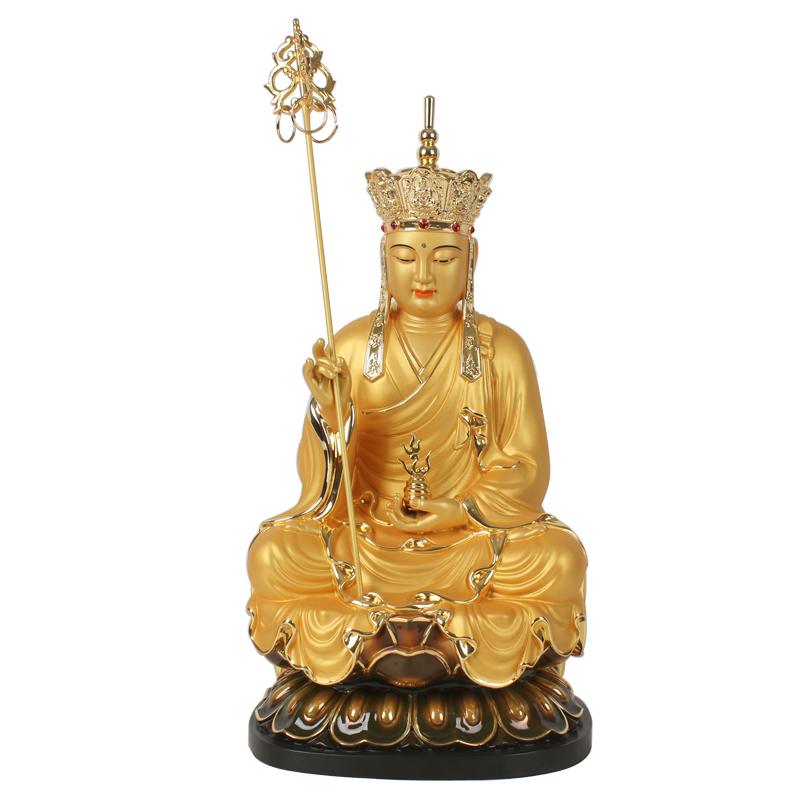 Taiwan pure copper handmade gilt Jizo King Buddha statue Jizo Bodhisattva Buddha statue household ornament Buddha statue of the Three Saints of Jizo