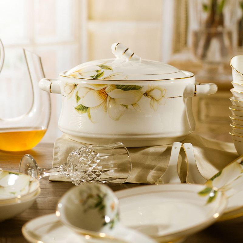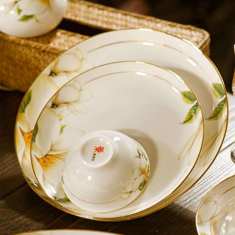 Cutlery Artisanal Phnom Penh Cutlery Ceramic Bowl tray Suit Healthy Home Bone China Porcelain Bowl tray Bowl Spoon Bowl 60 pieces