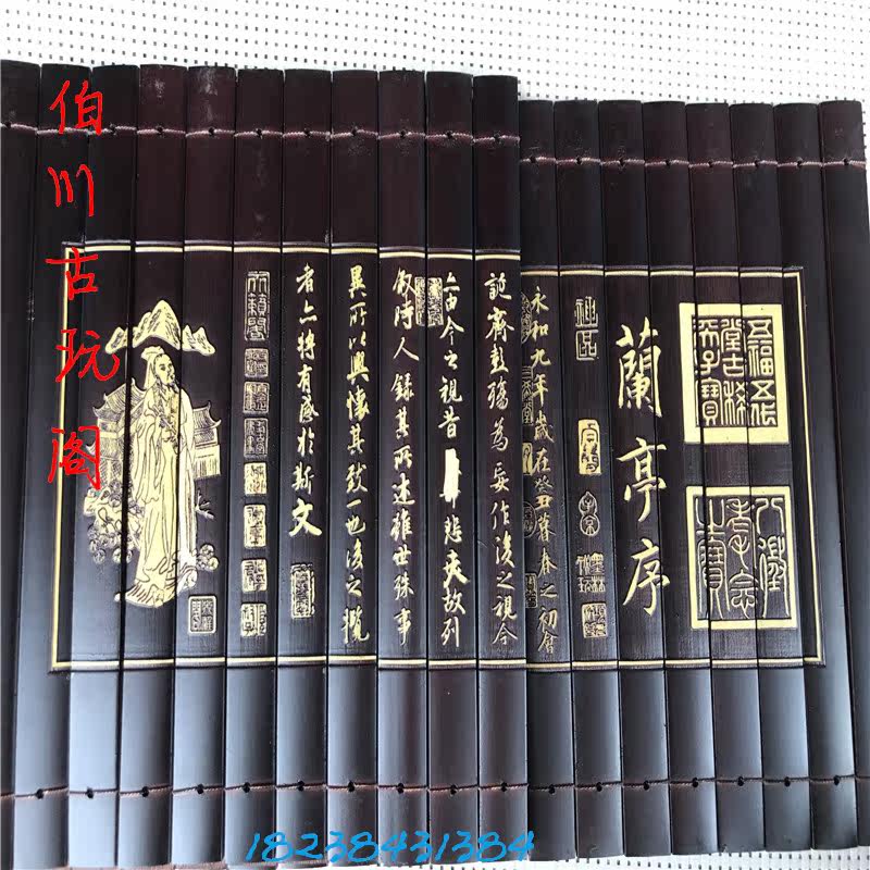 Antique miscellaneous calligraphy and painting collection bamboo slips handicrafts study decorative painting props Lanting preface bamboo carving bamboo products