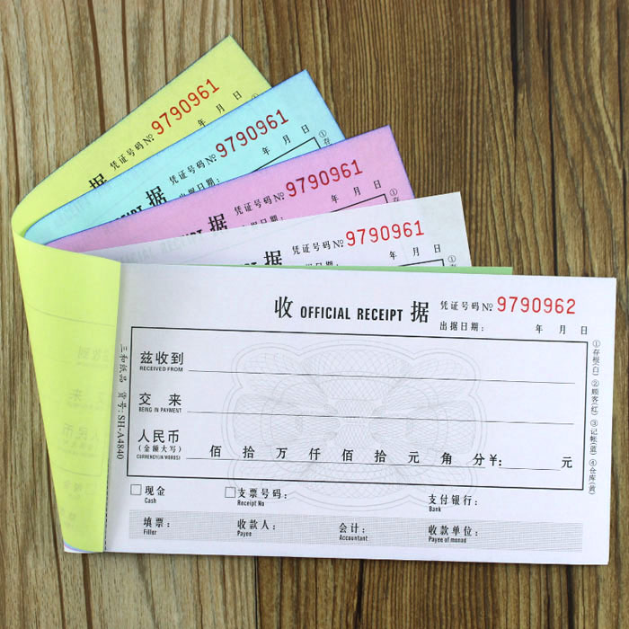 5 This document Two Union Triple Four linked no carbon rewritten single bill collection This single column is delivered with the receipt of receipts