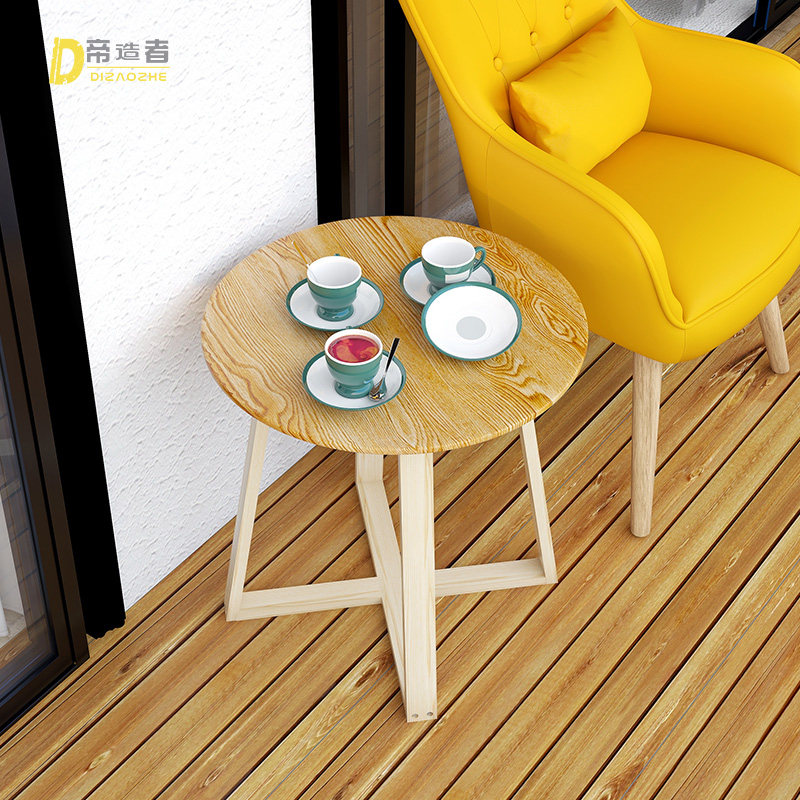 Nordic small household modern solid wooden tea several days side vertical balcony small round table drink tea living room coffee table