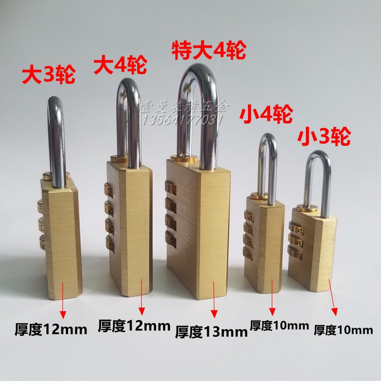 Small three-wheel combination lock Small four-wheel combination lock Large three-wheel combination lock Large four-wheel combination lock Extra large four-wheel combination lock
