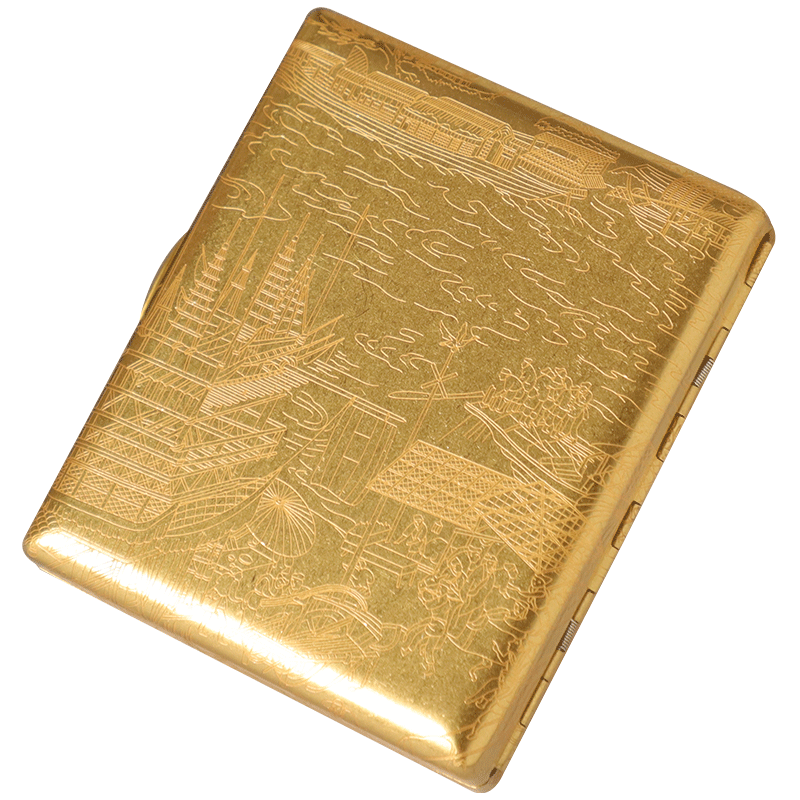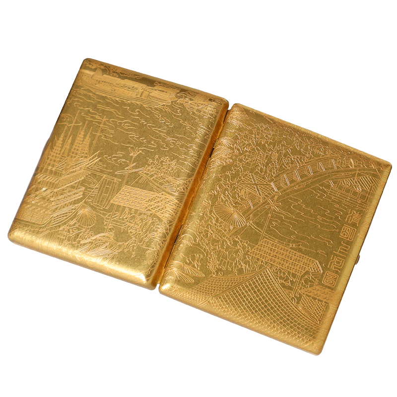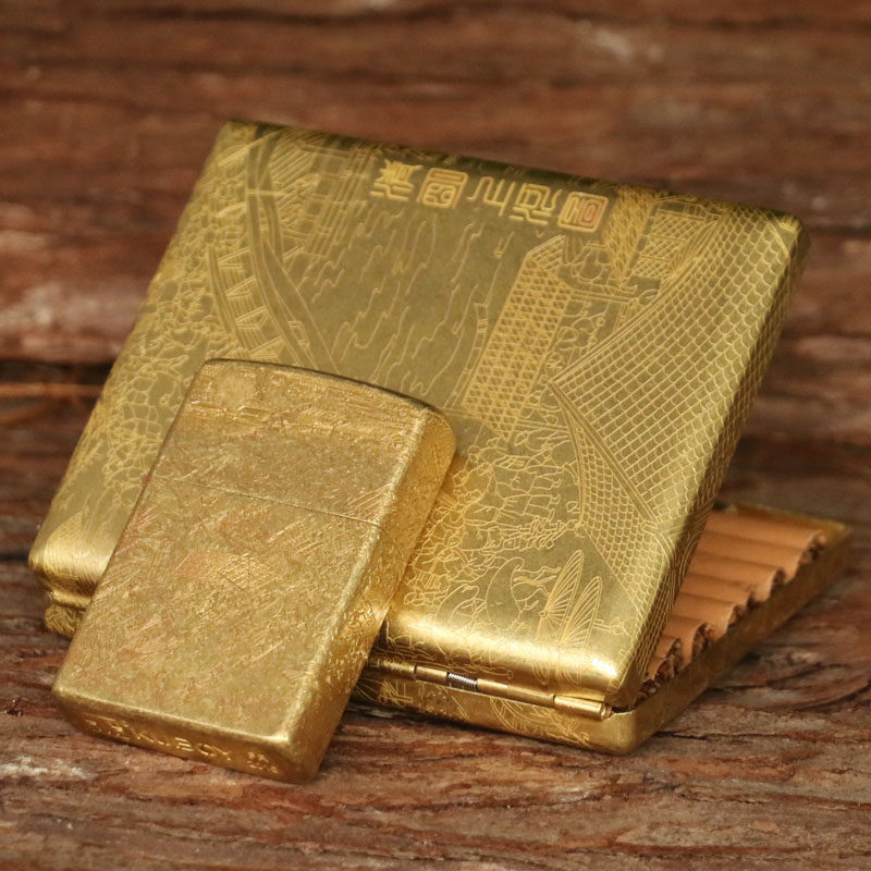 KUBOY Upper River Chart Brass Cigarette Case 20 Loaded Portable Retro Anti Pressure Male Metal Coarse Smoke Cigarette Case Bronze Gift