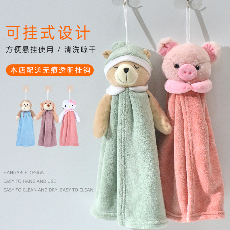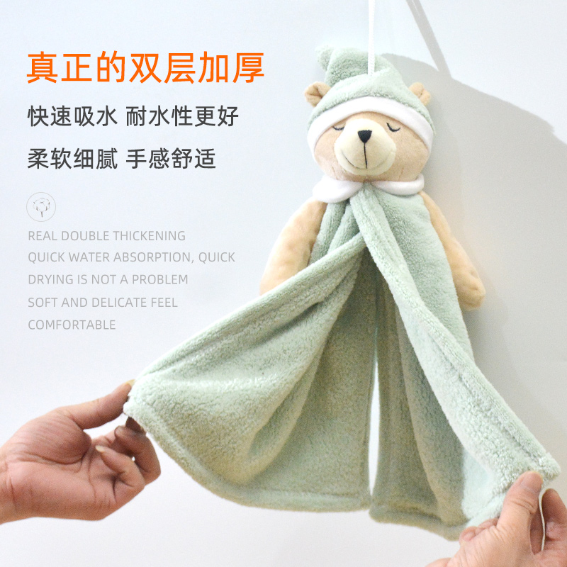 Double layer thickened strong absorbent rubbing hand towels Hanging Cute Cartoon Kitchen Rub Handcloth Children Handkerchief Dressing Room Towels