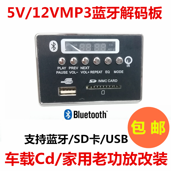 5V12V Bluetooth MP3 decoder board car amplifier audio modified WMAWAV format with display radio