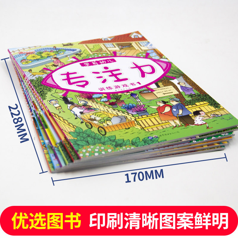 Preschool concentration training full 6 volumes, young children's thinking and concentration training 200 pieces, memory, attention, observation, potential development, baby's left and right brain early education enlightenment, puzzle game to find the difference picture book 2-