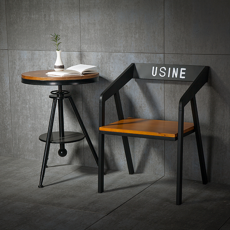 Modern dining chair simple industrial wind iron art solid wood back chair coffee shop office lounge dining room armrest chair