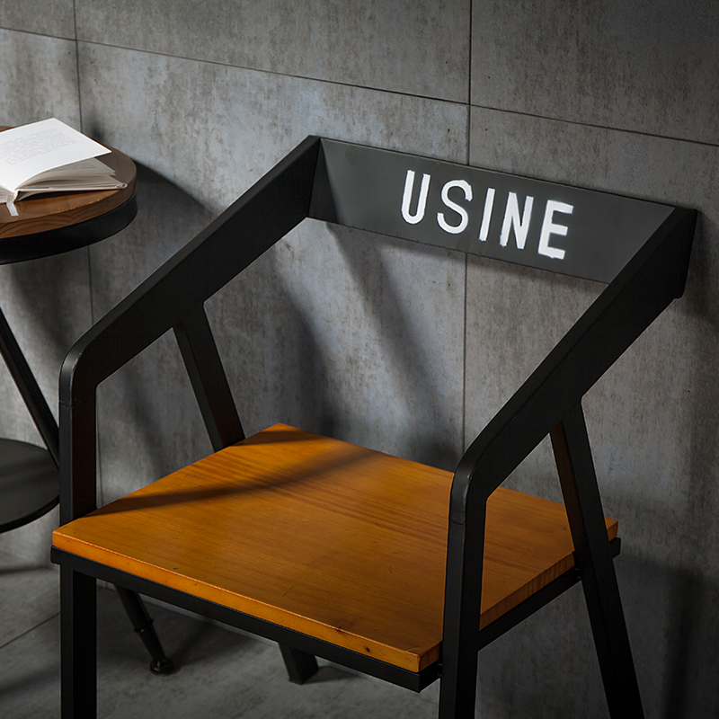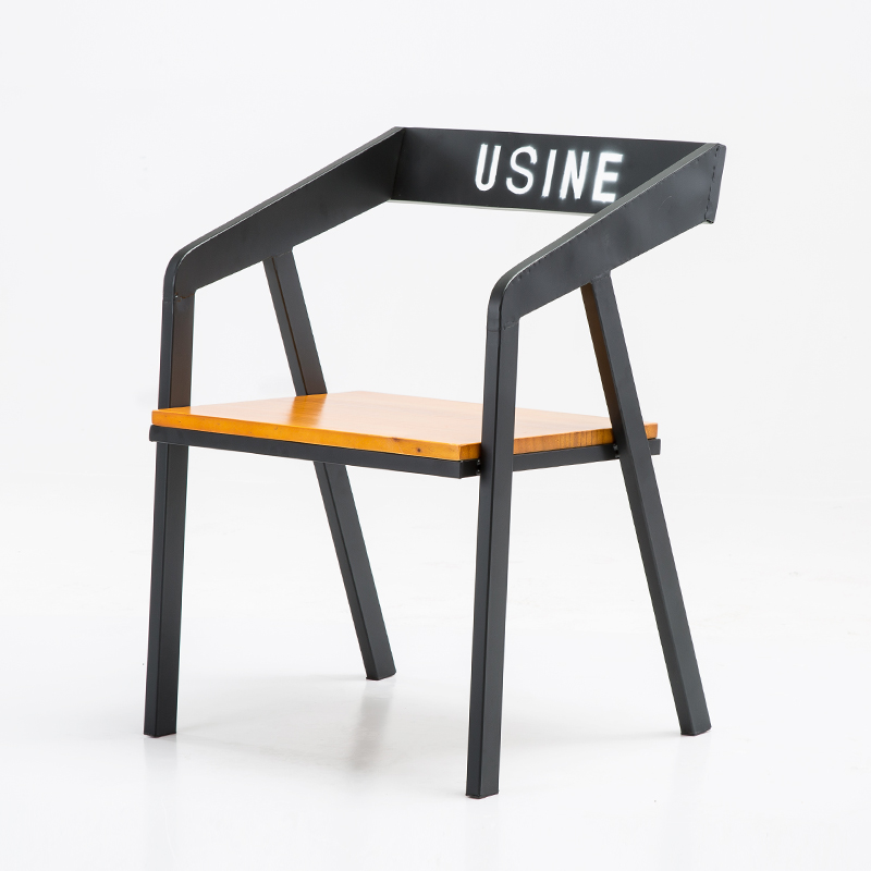 USINE wrought iron wood chair without logo iron solid wood chair color LOGO customization