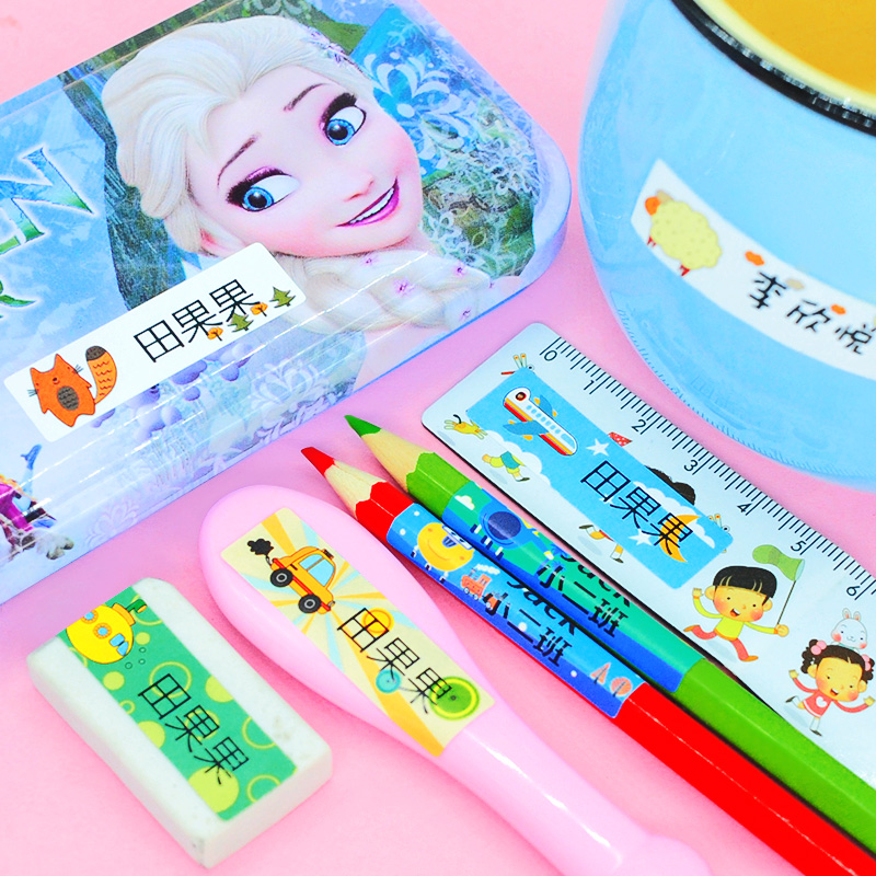 Kindergarten Custom name Labeling Waterproof children Name stickers Paper labels Babies Stationery Glass Cutlery Stickers