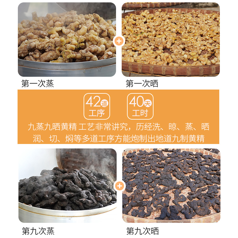 Nine yellow - fertilizer 9 - steam 500g Jiuhua Hua Mountain wild yellow - feng medicine made of nine - made yellow - fertilizer tea to drink water