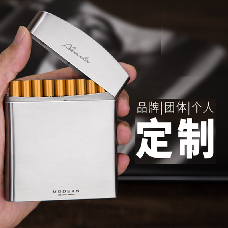 German Modern Creative Stainless Steel Incense Smoking Box Metal Smoking Box 20 Loaded Portable Men's Ultrathin Tobacco Box Customisation