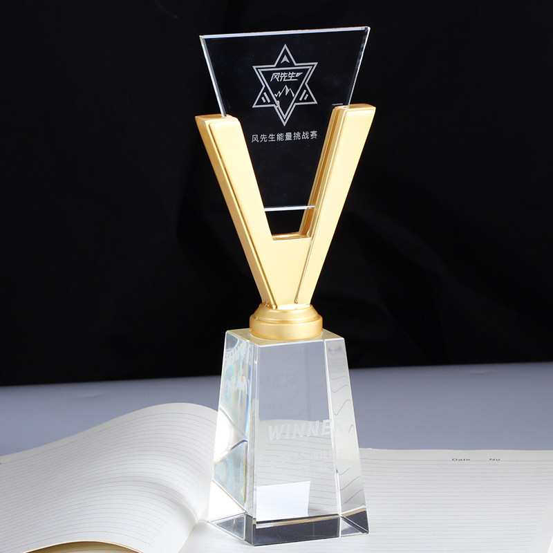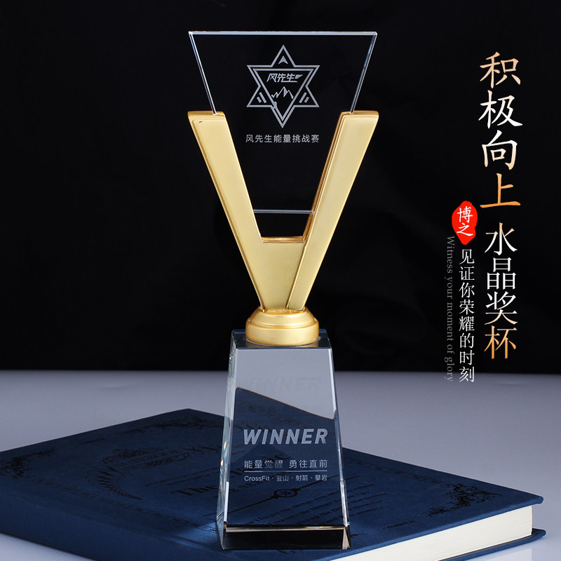 Crystal trophy medal custom company award authorization card High-grade metal V-shaped trophy custom souvenir lettering
