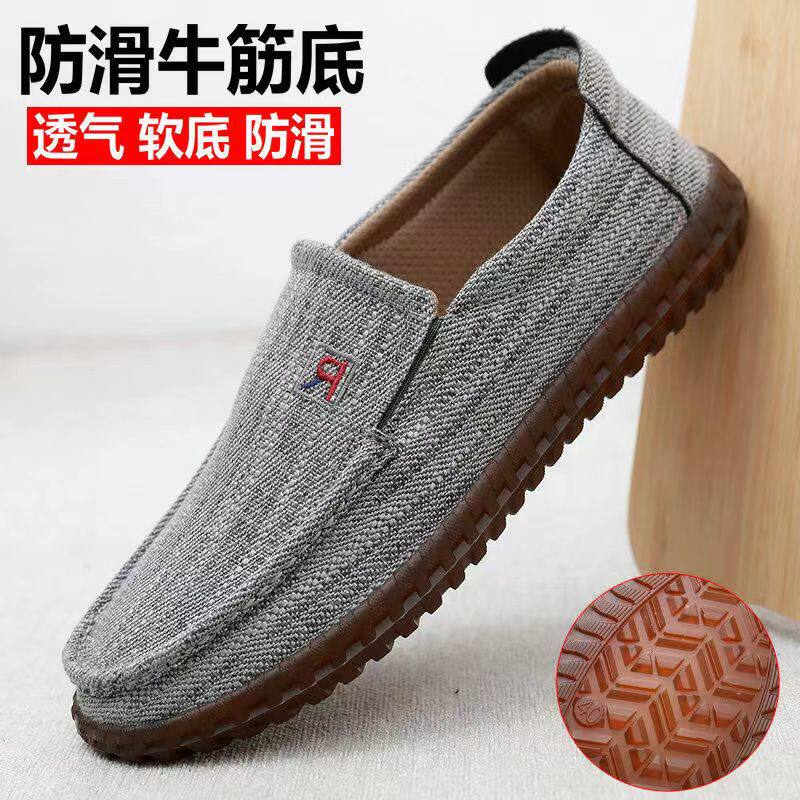 Autumn and winter linen men's single shoes old Beijing cloth shoes tendon soft bottom non-slip lazy shoes light one pedal dad cotton shoes