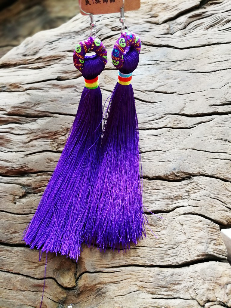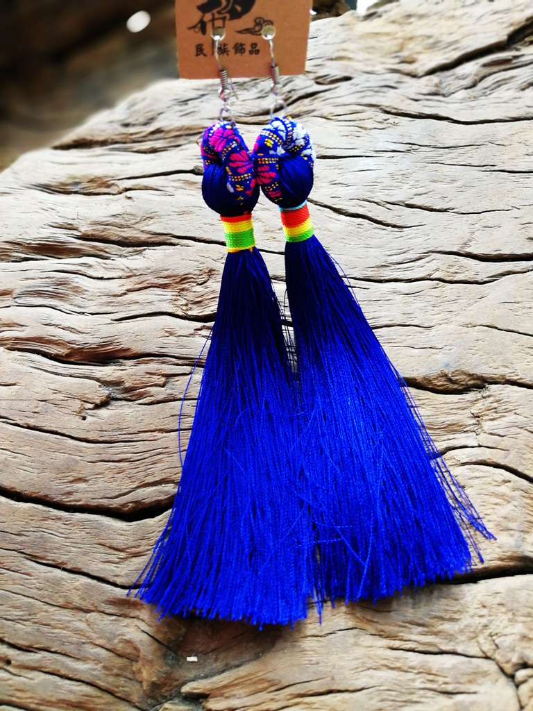 Vintage ethnic style long tassel earrings silk thread personality earrings show drop earrings women earrings