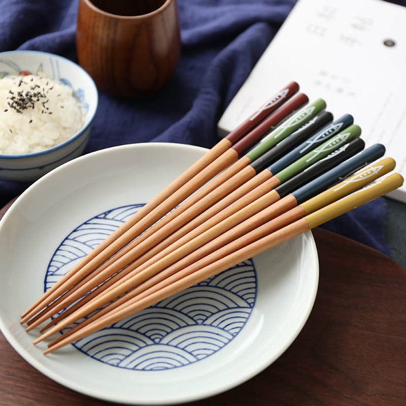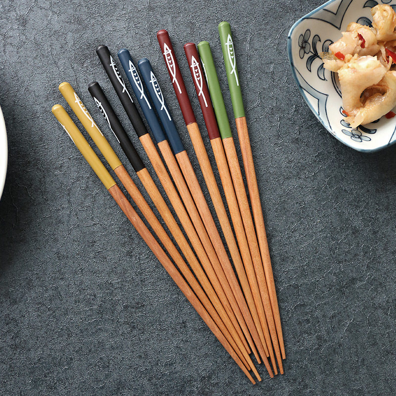 Sherry Day Style Upscale Flowers Chestnut Wood Chopsticks Couple Chopsticks Home Solid Wood Public Chopsticks One Chopsticks 5 Double Suit
