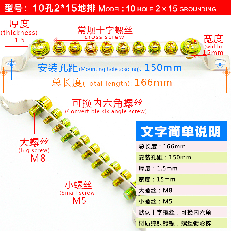 Manufacturer direct sales 10 holes 2 * 15 ground row zero ground row terminals distribution cabinet case brass jointed ground wire platoon pure copper bar