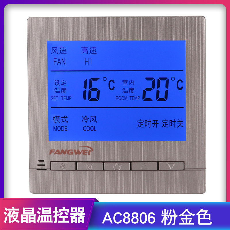 Central Air Conditioning Ventilator Pan Liquid Crystal Thermostat Earth Haute Champagne Gold Wire Drawing Three Speed Switch Controller Panel