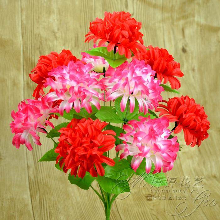 Emulated 12 head colored claw chrysanthemum bouquet Qingming sacrificial tomb-sweeping tombs The laying of the plastic fake flowers in front of the tomb