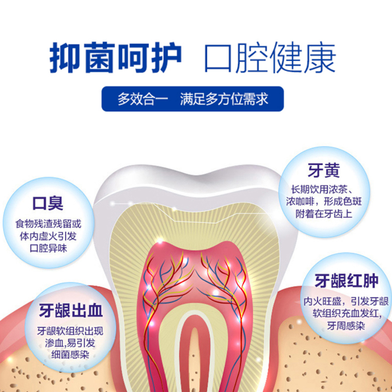 Whitening, anti-sensitivity, tooth stains, smoke stains, fresh breath, gum care, clear fire