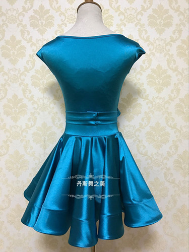 Import sparkling elastic satin Female children Latin dance standards stipulate competition dress oversized dress with widened fishbone flash