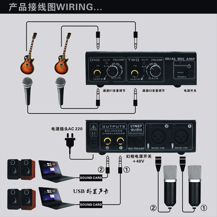 Line Puodore Professional Two-way capacitive microphone amplifier electric gie it electric bex amplifier signal intensifier-Taobao