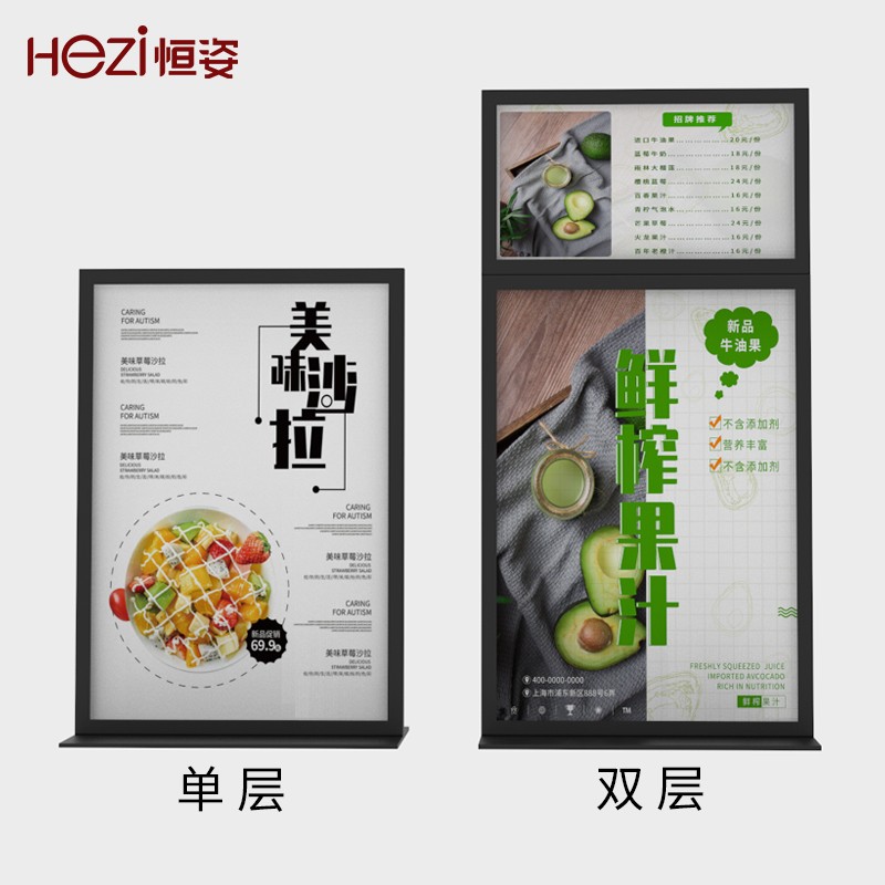 Stainless steel desktop stand display card photo frame photo frame A3A4 dining room water card double-sided poster advertising shelf