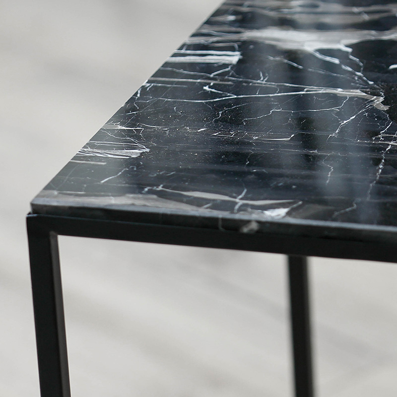 Nordic black marble simple modern coffee table small apartment movable living room creative square iron coffee table
