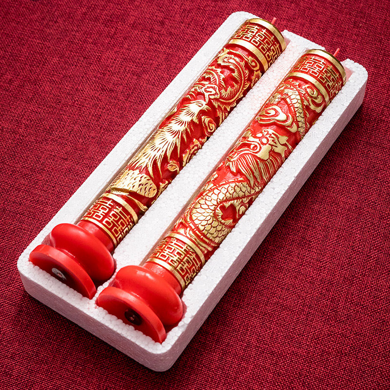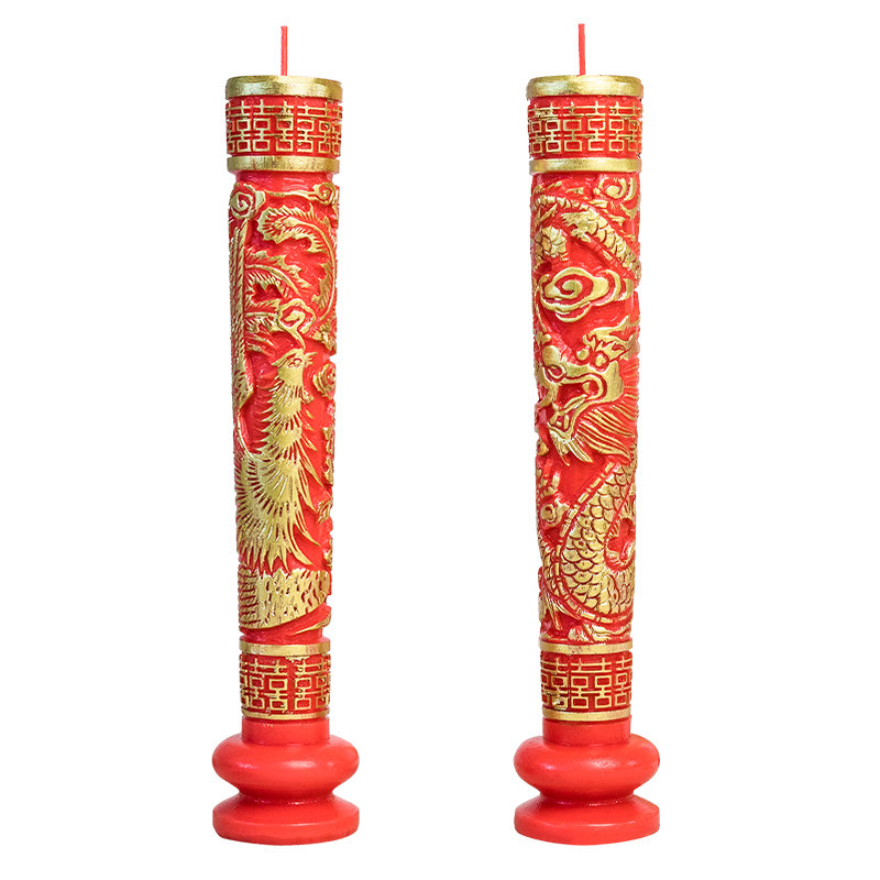 Small number of dragon crested candles A pair of medium dragon phoenix golden fludles a pair of large dragon phoenix golden fludles a pair of small number colorful dragon phoenix golden fludles a pair of midsize colorful dragon phoenix golden fludles a pair of big