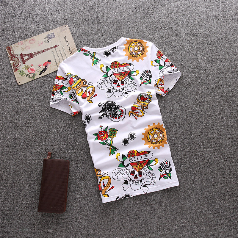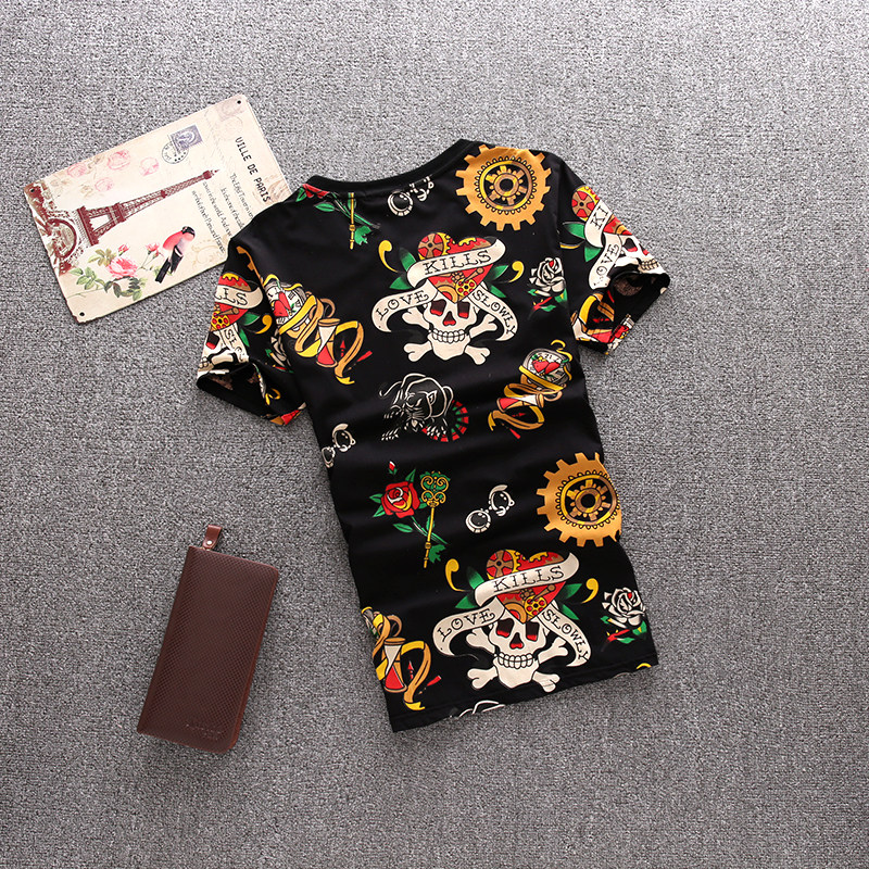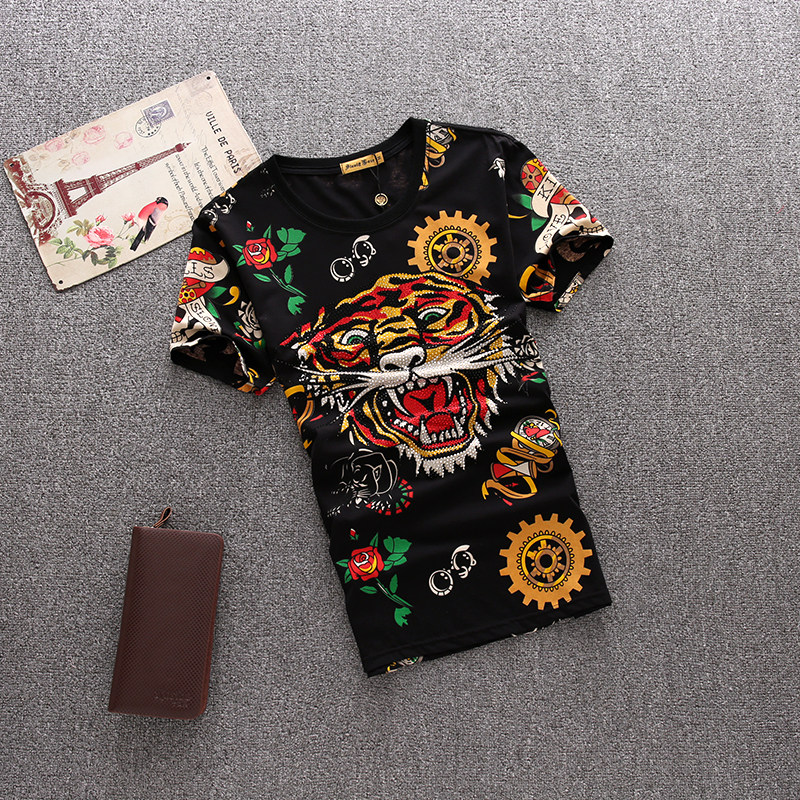 Men's pullover printed hot diamond 2021 summer new hot drill tiger head red heart skull men's short-sleeved T-shirt