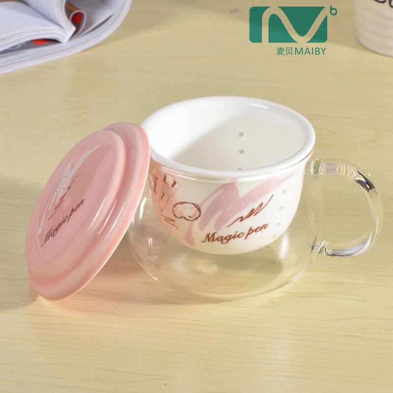 Office cup printed glass ceramic with lid with tea leak high temperature resistant little fresh creative gift Fancy Tea Lovers Cup