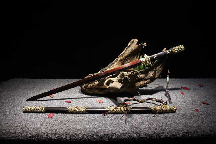 Tang Sword Longquan Cold Soldier Treasure Sword handmade knife Jianjin Genuine Gold Inlaid Jewel Pattern Steel High-end Sword Collection Unopened Blade
