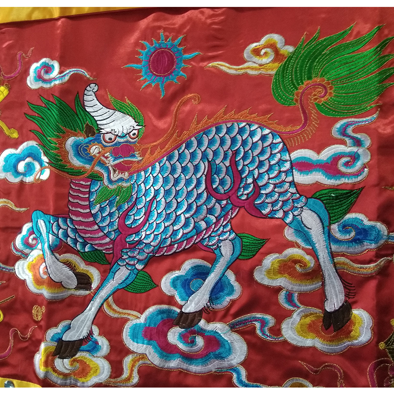 Jinyu Mantang Table Surrounding Embroidery Kylin Hokkien Festive Housewarming Satin Cloth Table Surrounding for Table Red Cloth Three-foot Household Tablecloth