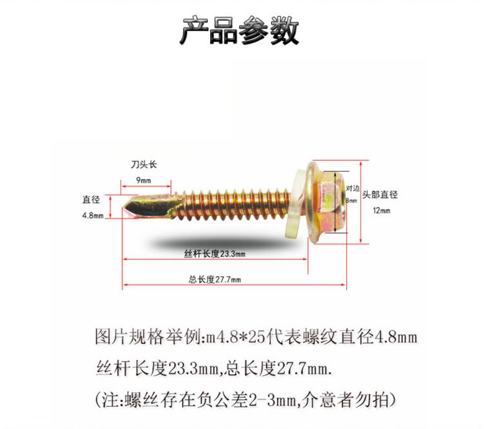 Large and board external hexagon drilling tail screw Colour steel tile dovetail screw self-drilling self tapping drilling tail screw M4 8