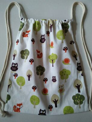Fabric homemade cotton travel shoulders drawing rope backpack spring small tree adult children's goods collection bag