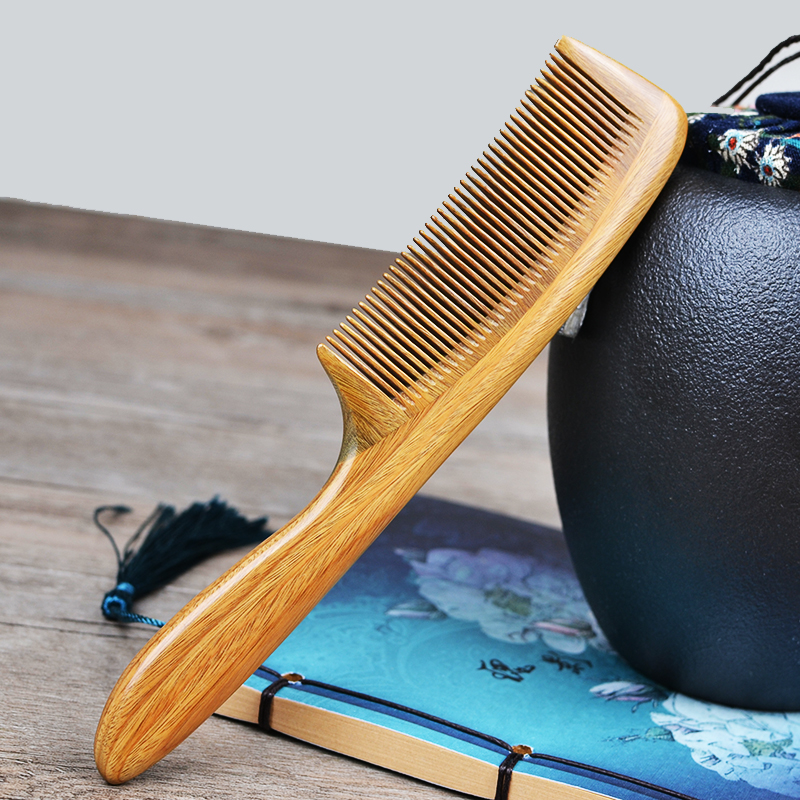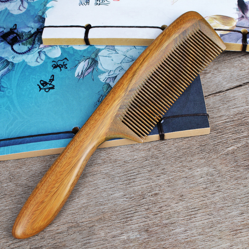 Straight hair small dense tooth comb Natural green sandalwood comb Anti-static massage comb Fine tooth baby children cute comb lettering
