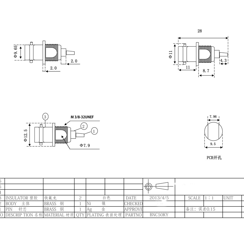BNC-KY welded BNC connector Welded Q9 female seat 75 ohm Welded bnc female BNC75KY