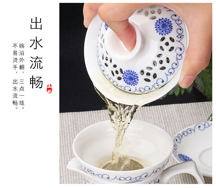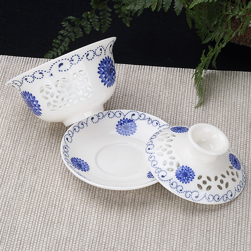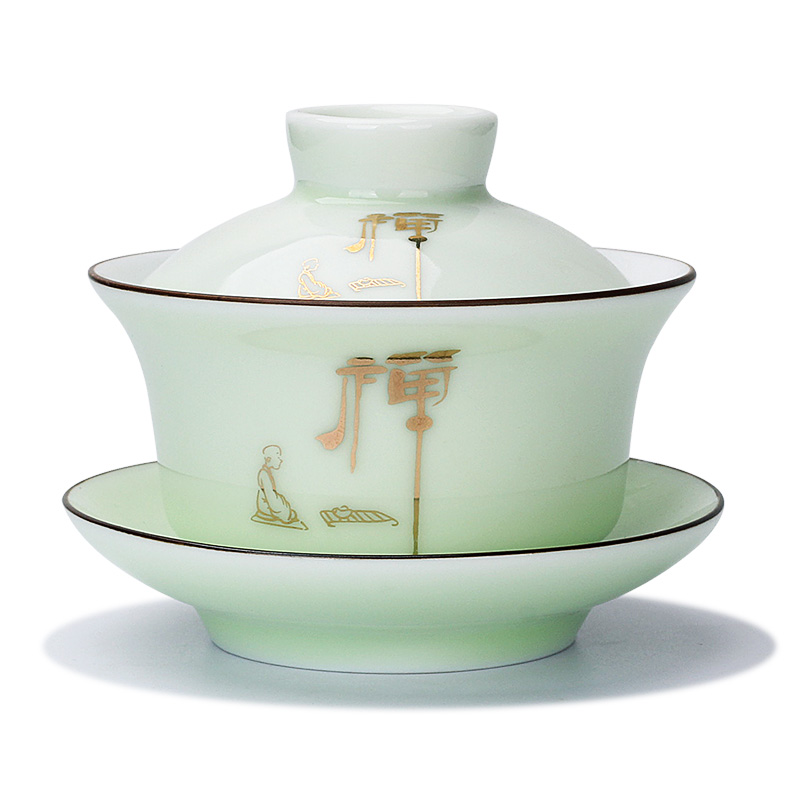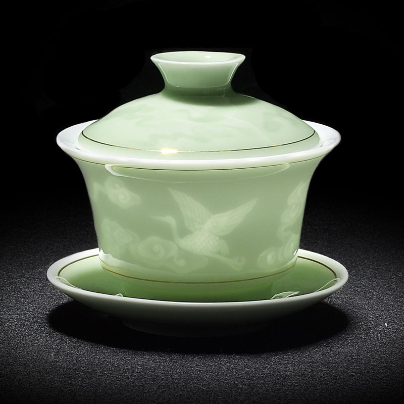 Green flower porcelain cover bowl large number 300ml special large number tea cup tea bowl single three-only tea tea ceramic util tea tea set